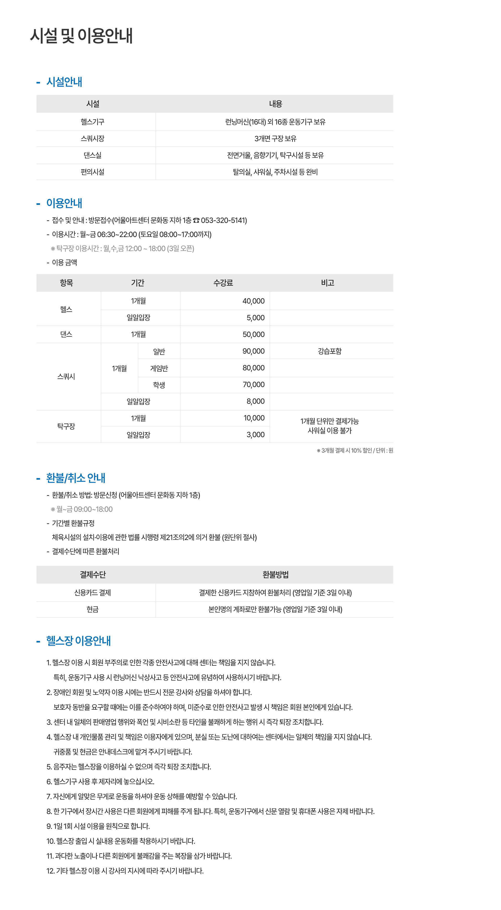 시설 및 이용안내