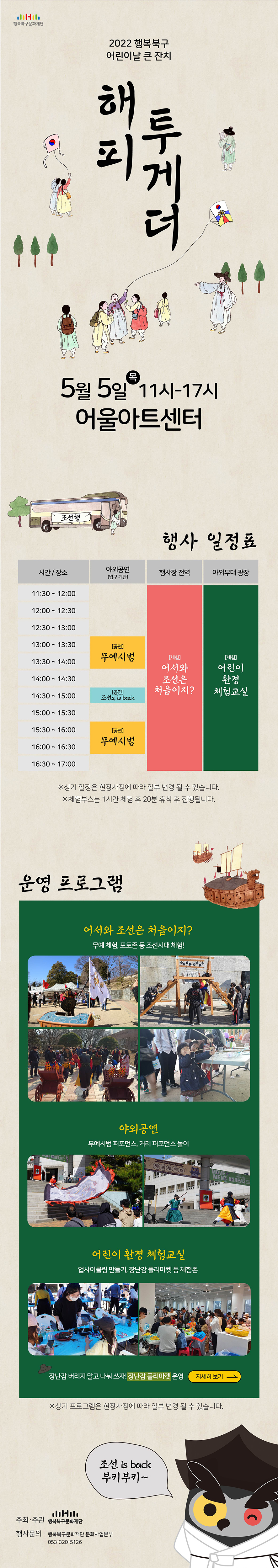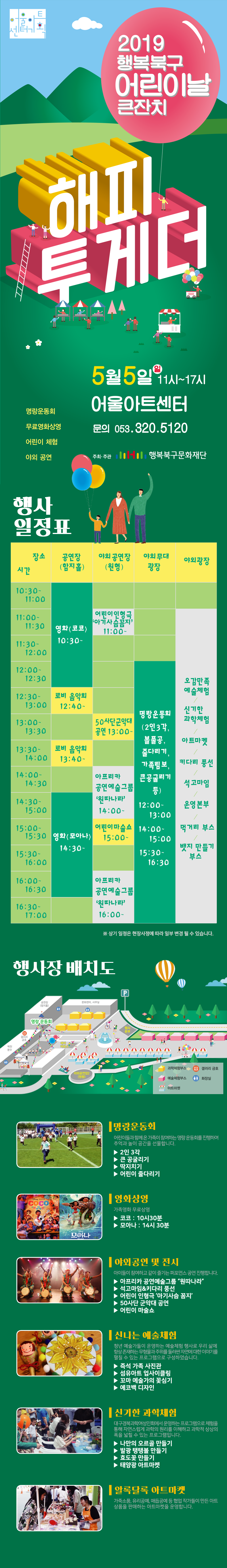 행복 어린이 동요대회를 개최하고 직업체험부스, 다채로운 야외 공연, 놀이터 등